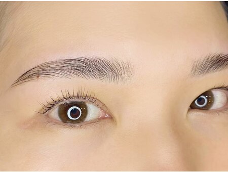 アジアンブロウで平行眉に整えた後に、毛流れを自然に整えるます。立ち眉で眉毛全体、部分的に薄い、眉頭だけ立たせたい、眉頭が細いので太く見せたい、などお悩みを解消することが可能です。お客様のなりたい眉毛に近づけ、満足度UPを目指せるメニューです。